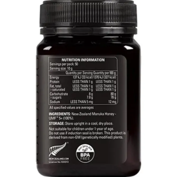 - Product Ingredients: 100% New Zealand Manuka Honey UMF5+