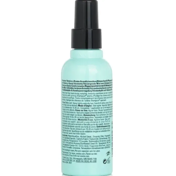 - A vegan, thermal protective dry hairspray. Features a 97% naturally derived formula to condition dry hair. Contains certified organic jojoba & sunflower seed oils to soften & detangle hair. Protects hair from heat up to 450 degrees during restyling. Infuses hair with calming shampure aroma. Free of petrolatum, parabens, mineral oil, synthetic fragrance, sulfate & phthalate.