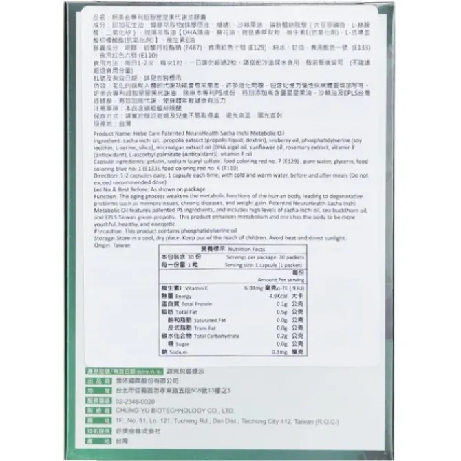 - This product not only contains the original patented PS ingredient but also adds high-content star fruit oil, sea buckthorn oil, and EPLS Taiwan green propolis. This effectively enhances metabolism, keeping the body youthful, healthy, and energetic!