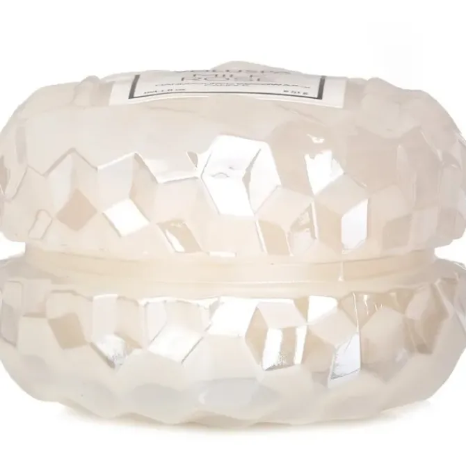 - Housed in a unique glass container textured with a classic geometric 3D cube pattern