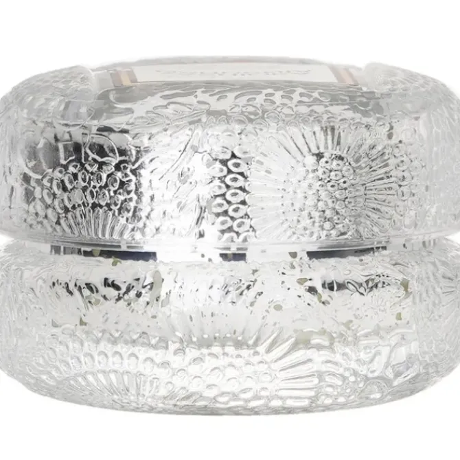 - Housed in a unique glass container textured with a classic geometric 3D cube pattern