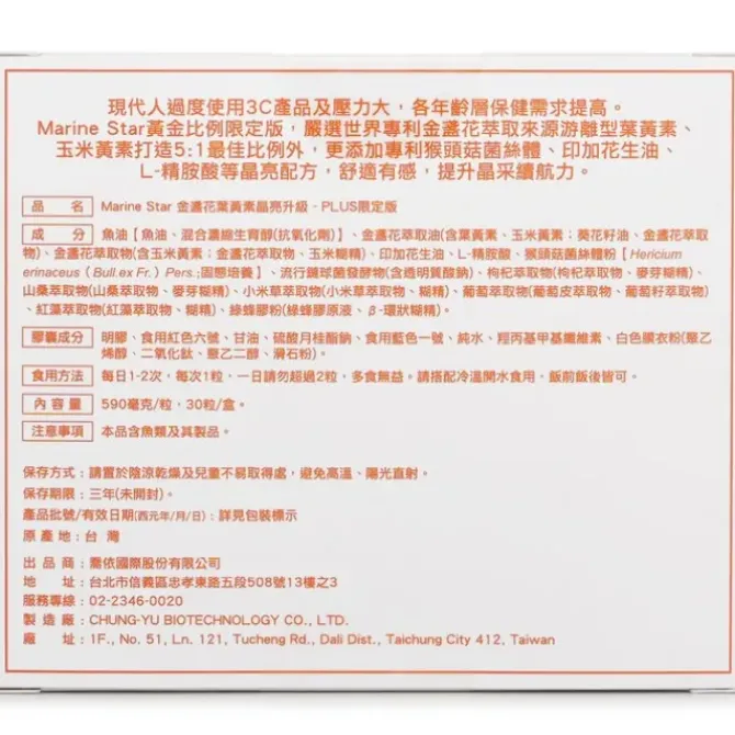 - 15mg High-Content Free Lutein Japanese Encapsulation Technology + Golden Ratio 5:1