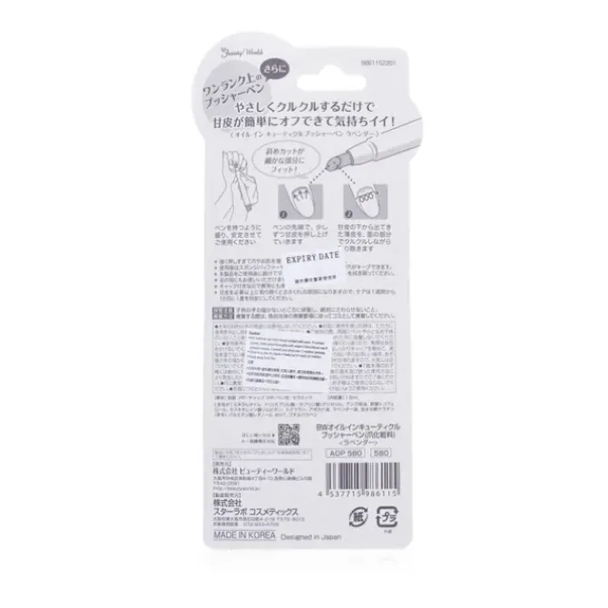 - A cuticle oil pusher pen with six natural beauty ingredients