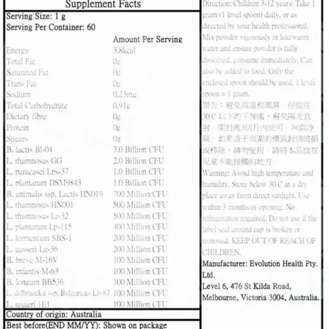 - 【Product Description】 A premium probiotic formula containing 15 strains of beneficial bacteria, formulated to support a healthy microbiome and general health and wellbeing.【Product advantages】 Support everyday health and wellbeing Maintain immune system health Support the intestinal microbiome Support healthy bowel function【Remarks】Store below 30C in a dry place. Use within 3 months of opening. No refrigeration required.Do not use if the label seal around cap is broken or removed.This product is a food product and cannot replace any medicine.This product is not registered under the Pharmacy and Poisons Ordinance or the Chinese Medicine Ordinance. Any claim made for it has not been subject to evaluation for such registration. This product is not intended to diagnose, treat or prevent any disease.For details, please refer to the label on the product.The picture above is for reference only. The real object should be considered as final.