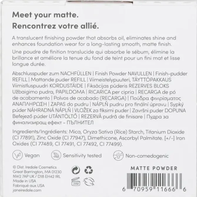 - Soft powder that imparts a fresh, matte finish