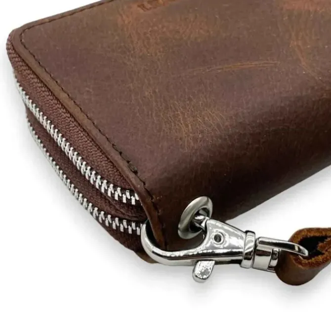 - The Rhys Distressed Leather Card and Key Pouch/Case has two main compartments, two separated card slots, two slip pockets, and six key holders.