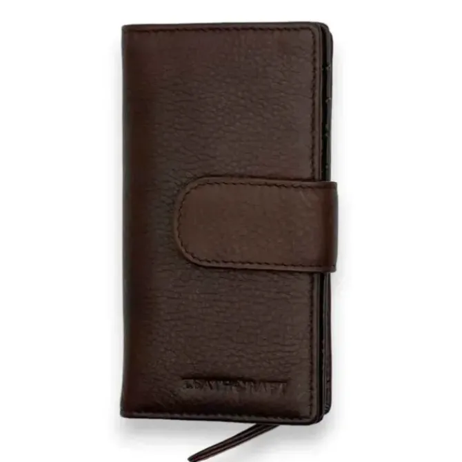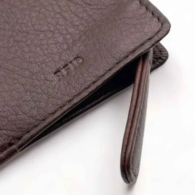 - Size: 5.75" x 3" Genuine full grain cowhide leather from US Snap tab closure Eight card slots ID window. Two full length slip pockets Exterior zip pocket for coins Nylon lining RFID lining protects against identity theft. This wallet makes a stylish statement while also offering advanced security. US cowhide leather offers unbeatable durability, and the RFID lining protects against identity theft. With eight card slots, an ID window, two full length slip pockets and an exterior zip pocket for coins, you'll always be organized and prepared.