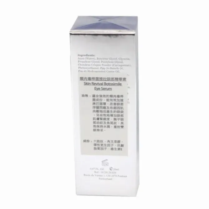 - This eye serum creates to regenerate the sparkle of youth in your eyes, specially formulated with powerful ingredients, help reducing under-eye puffiness by favouring lymphatic drainage and fighting skin slackening. Clinically proven that Skin Revival Botosimile Eye Serumsignificant reduces oedema and the surface of eye bags, and increase skin firmness and tone.