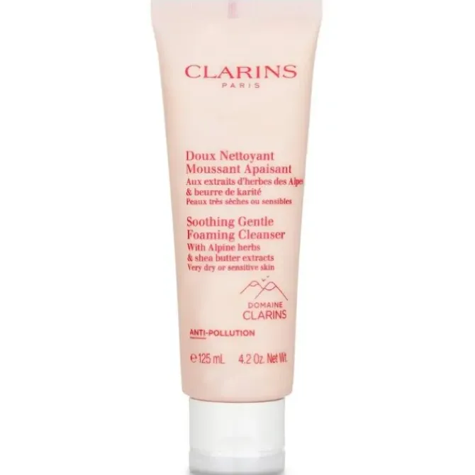 - A creamy, rinse-off, foaming facial cleanser Naturally lathering formula helps gently & effectively remove impurities, makeup & pollution Contains purifying Alpine herbs sourced from the brand's own farm, Le Domaine Clarins Blended with soothing Organic Chamomile & Shea Butter Loaded with vegetal squalene to protect skin’s hydrolipidic film from the drying effects of hard water Scented with floral notes to refresh the senses Leaves skin soft, smooth & incredibly comfortable Ideal for very dry or sensitive skin Free of soap, SLS & colorant, dermatologist-examined