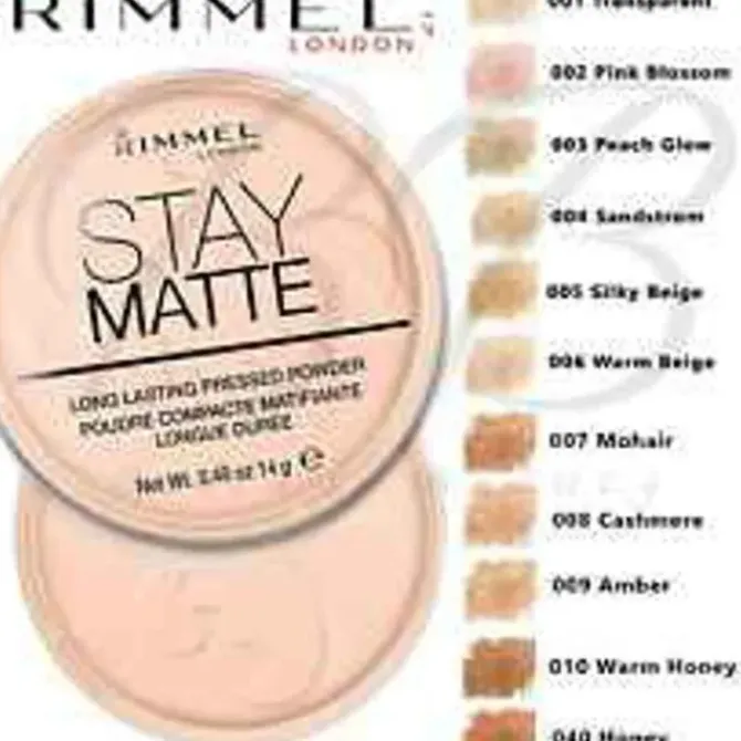 - Rimmel London Stay Matte Pressed Powder is thin, long-lasting oil control, matte effect, and covers pores. It uses natural mineral powder, which is naturally gentle, light and not heavy, and does not clog pores. The unique matte oil-controlling powder can control oil for a long time, keep makeup from coming off for a long time, and contains highly effective moisturizing ingredients. Dermatologist tested.