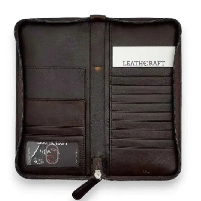 - Three slip pockets Exterior slip pocket Nylon lining RFID lining protects against identity theft Crafted from durable cowhide leather, the passport wallet & organizer features dedicated pockets for airline tickets, a passport, eleven card slots, three slip pockets, and an exterior slip pocket.