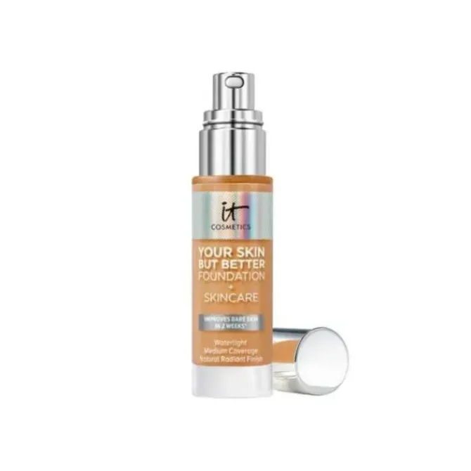 - IT Cosmetics Your Skin But Better Foundation + Skincare effectively improves your skin tone and gives you a more perfect skin. Its smooth and lightweight texture can help improve the appearance of skin, cover blemishes, minimize pores, and provide a natural, flawless finish. After use, skin looks more refined, with improved elasticity and texture.The foundation contains soothing aloe vera, as well as vitamins E and B5, which help nourish the skin and make it comfortable when applied. The hyaluronic acid contained in it can continuously provide moisture to the skin, and the delicate texture gives you a natural and shiny makeup effect, creating a healthy complexion. At the same time, it protects the skin. Whether it's concealing, moisturizing or radiating skin, this foundation has what you need to give you a confident, beautiful glowFor detailed information about the product, please refer to the instructions on the packaging.Pictures are for reference only, the actual