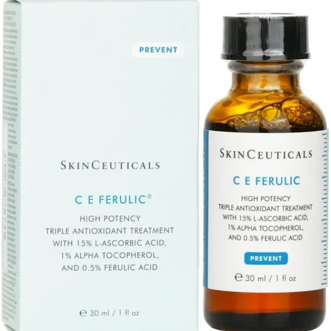 - High potency triple antioxidant facial serum. Formulated with Vitamin C and E for antioxidant properties. Blended with Ferulic Acid to maximize its antioxidant effectiveness. Optimizes skin protection from environmental damage. Helps prevent the appearance of premature aging signs.