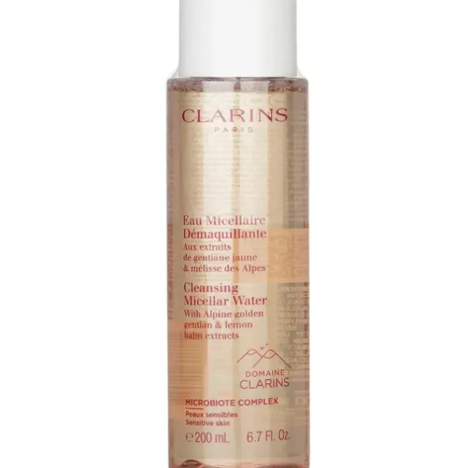 - A no-rinse, refreshing micellar cleansing water with a hint of fruity-floral. Contains purifying Alpine herbs & microscopic cleansing spheres to remove light makeup, impurities & pollutants. Powered by exclusive Gentle Complex, Organic Golden Gentian & Organic Lemon Balm extracts sourced from Le Domaine Clarins. Helps soothe & soften skin. Infused with Moringa extract to detoxify skin. Safe for use on eyes, face & lips. Suitable for all skin types, even sensitive skin. Colorant-free, dermatologist- & ophthalmologist-examined.