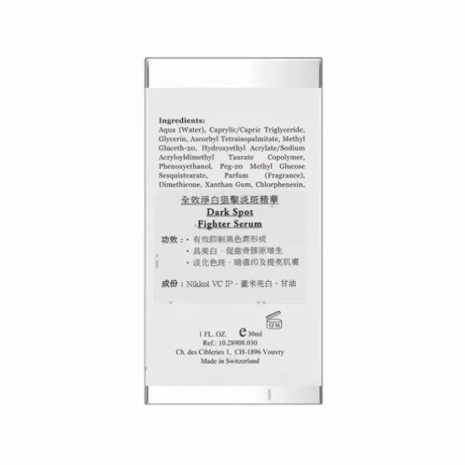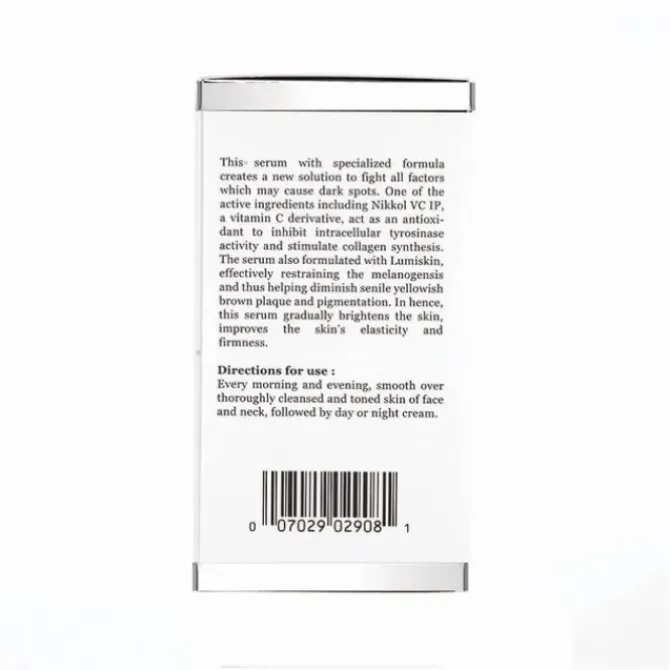 - This serum with specialized formula creates a new solution to fight all factors which may cause dark spots. One of the active ingredients including Nikkol VC IP, a Vitamin C derivative, act as an antioxidant to inhibit intracellular Grosinase activity and stimulate collagen synthesis.