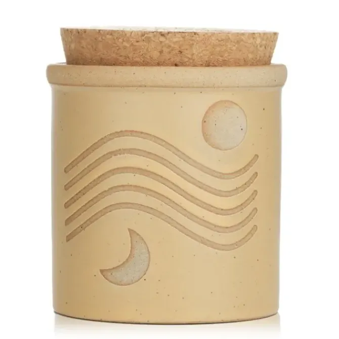 - Housed in an organic style ceramic vessel with a burnished cork lid