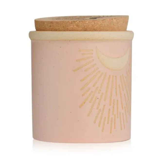 - Housed in an organic style ceramic vessel with a burnished cork lid