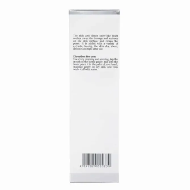 - The rich and dense snow-like foam washes away the damage and makeup on the skin surface, and cleans the pores. It is added with a variety of extracts, leaving the skin dry, clean, delicate and tight after use.