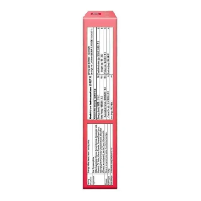 - Other Ingredients: Glucose syrup, cane sugar, condensed milk, coconut oil, water, cocoa powder, caramel syrup, gelling agent (gum arabic), chocolate flavor, emulsifier (glyceryl monostearate), vanilla flavor. Milk-contain