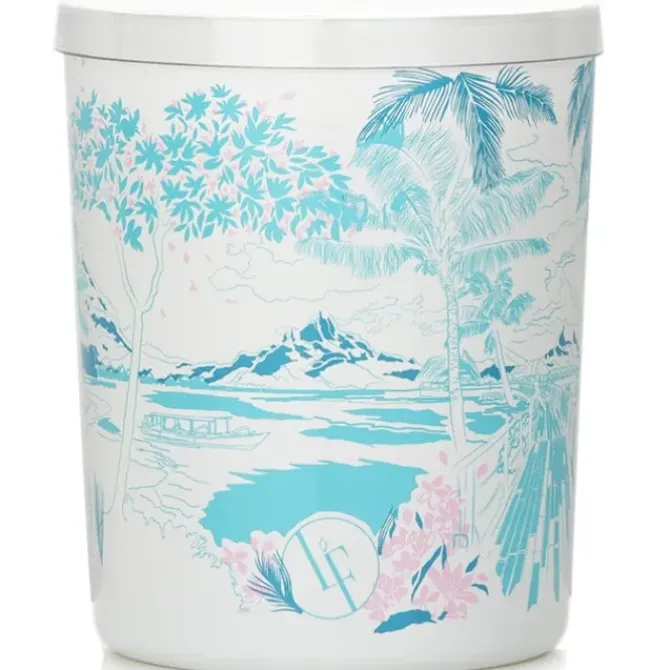 - Presented in a white glass container with shades of blue & pink floral details, transporting you to an idyllic landscape
