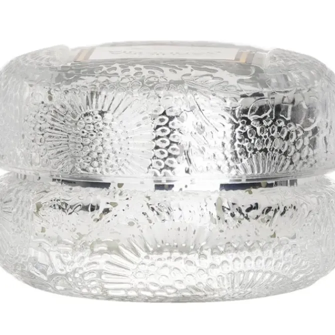 - Housed in a unique glass container textured with a classic geometric 3D cube pattern
