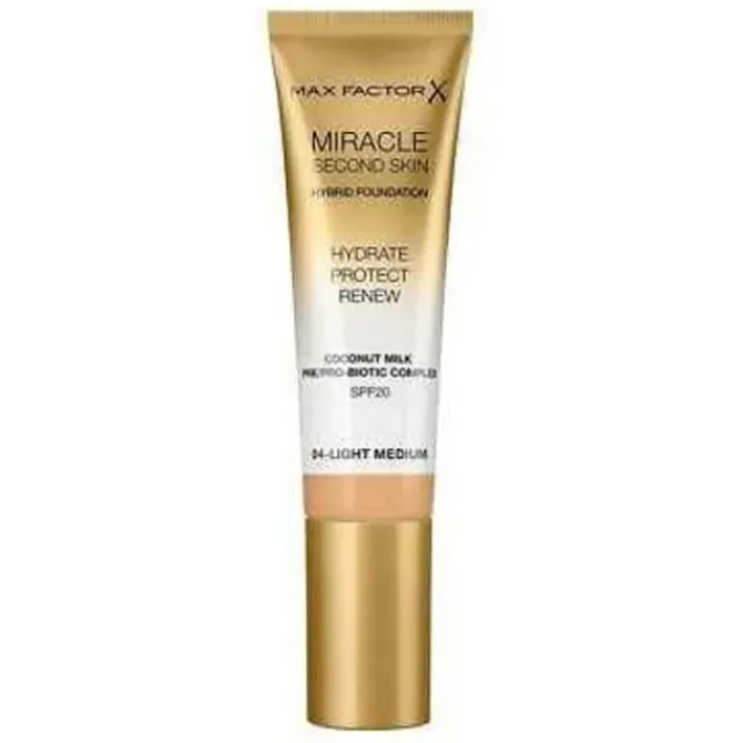 - Max Factor Miracle Second Skin Hybrid Foundation This foundation has the dual effects of skin care and makeup, which can nourish dry skin. The unique formula contains natural coconut extract, combined with prebiotics and probiotics, which helps to enhance the skin's natural defense ability, while moisturizing, reducing skin redness and swelling, and refining pores. Suitable for all skin types, including sensitive skin. The texture is light and moisturizing, and it is very easy to spread. It is like your second layer of skin, which can provide perfect concealer effect while moisturizing, keeping the skin hydrated all day long.