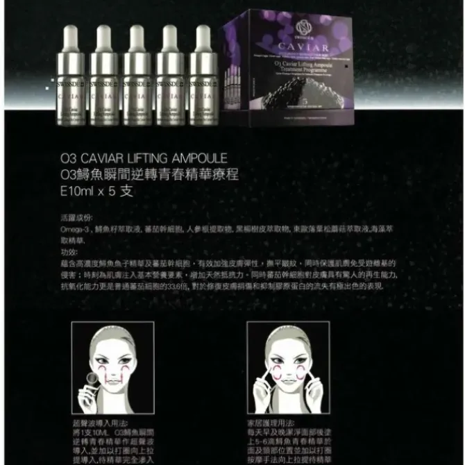 - Swissde – O3 Caviar Mosturizing Concentrate Serum (Anti-Wrinkling, Anti-Aging, Firming, Antioxidant) (e10ml Ampoule / 5 Ampoules per box) SW003