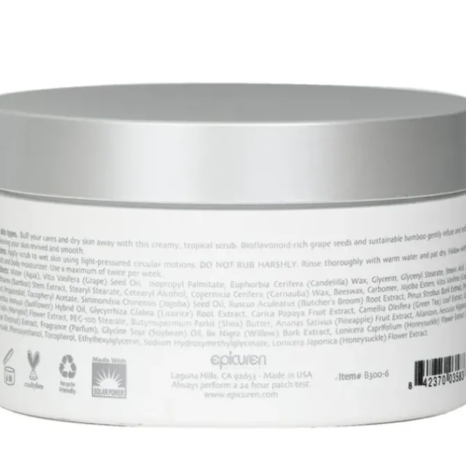 - A creamy, tropical body scrub