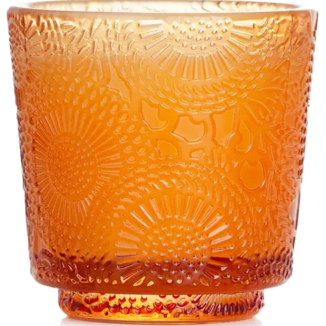 - Housed in an embossed electroplated glass container to mimic the magical glow of a fireplace