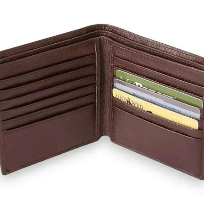 - Size: 4.5 x 4.75 Genuine full grain cowhide leather from US. Twelve credit card slots Two slip pockets Nylon lining RFID Lining. The 12 Pockets Wallet is a unique wallet made from genuine US cowhide leather, featuring a divided bill compartment, twelve credit card slots, two slip pockets, and RFID lining for added security. With its small size of 4.5 x 4.75, it provides reliable organization without taking up too much space. For those who take their security seriously, the 12 Pockets Wallet features RFID lining for protection against digital pickpocketing. The wallet is crafted from genuine full grain cowhide leather and fitted with a divided bill compartment, twelve credit card slots, and two slip pockets for organized storage and easy access. Despite its extensive features, the wallet's small size of 4.5 x 4.75 makes it perfectly portable.