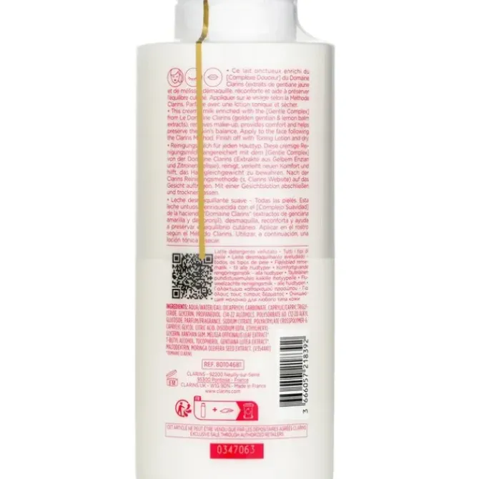 - A hydrating, creamy facial cleansing milk with a hint of floral. Helps gently remove lightweight makeup, impurities & pollutants. Contains exclusive Gentle Complex, Organic Golden Gentian & Organic Lemon Balm extracts sourced from Le Domaine Clarins. Helps soothe & soften skin. Infused with Moringa extract to detoxify skin. Loaded with two natural humectants to boost skin’s natural hydration. Suitable for all skin types. Safe for use on face, eyes & lips. Colorant-free, dermatologist- & ophthalmologist-examined.