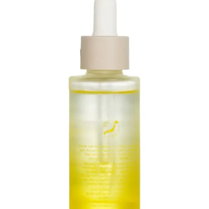 - A bi-phase oil serum that features a fresh, fast-absorbing texture. The formula consists of 98% ingredients of natural origin. Yuzu Extract, Japanese Citrus from Kochi, helps replenish and maintain skin moisture. The Superfood Oil Blend (Grapeseed Oil, Rosehip Oil, Sunflower Oil) hydrates and softens the skin for a natural glow. The Vitamin C Complex (Vitamin C Ethyl + Oil-Soluble Vitamin C) provides antioxidant support for a brighter-looking skin. The versatile formula can be used over the entire face or on targeted areas, and can be used before or in place of a moisturizer. The product is vegan, cruelty-free, fragrance-free, dermatologist-tested, and non-comedogenic.
