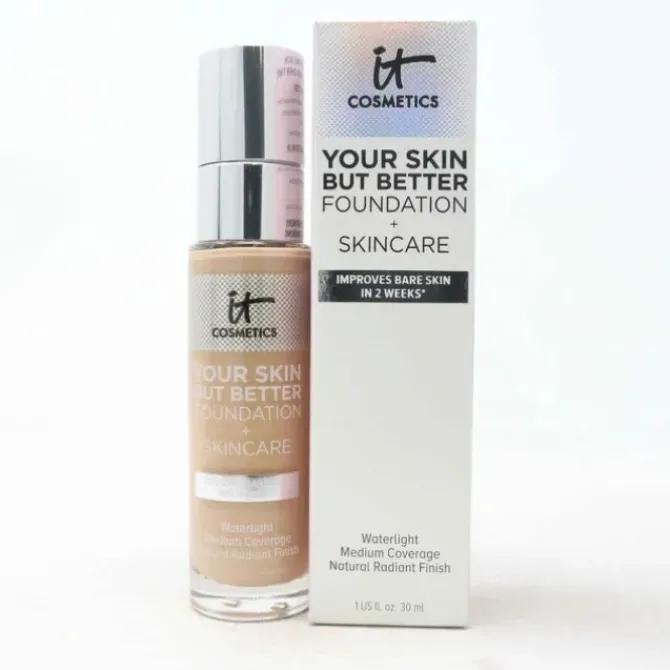 - IT Cosmetics Your Skin But Better Foundation + Skincare effectively improves your skin tone and gives you a more perfect skin. Its smooth and lightweight texture can help improve the appearance of skin, cover blemishes, minimize pores, and provide a natural, flawless finish. After use, skin looks more refined, with improved elasticity and texture.The foundation contains soothing aloe vera, as well as vitamins E and B5, which help nourish the skin and make it comfortable when applied. The hyaluronic acid contained in it can continuously provide moisture to the skin, and the delicate texture gives you a natural and shiny makeup effect, creating a healthy complexion. At the same time, it protects the skin. Whether it's concealing, moisturizing or radiating skin, this foundation has what you need to give you a confident, beautiful glow.