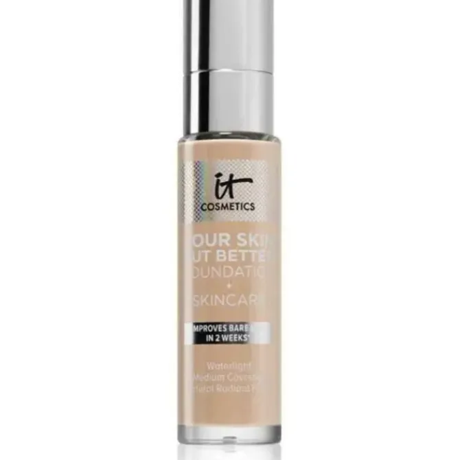 - IT Cosmetics Your Skin But Better Foundation + Skincare effectively improves your skin tone and gives you a more perfect skin. Its smooth and lightweight texture can help improve the appearance of skin, cover blemishes, minimize pores, and provide a natural, flawless finish. After use, skin looks more refined, with improved elasticity and texture.The foundation contains soothing aloe vera, as well as vitamins E and B5, which help nourish the skin and make it comfortable when applied. The hyaluronic acid contained in it can continuously provide moisture to the skin, and the delicate texture gives you a natural and shiny makeup effect, creating a healthy complexion. At the same time, it protects the skin. Whether it's concealing, moisturizing or radiating skin, this foundation has what you need to give you a confident, beautiful glow.